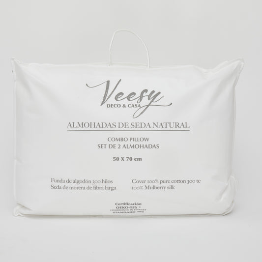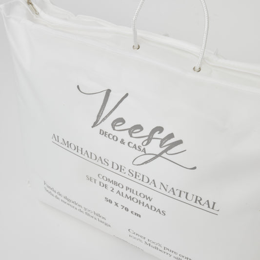 2 ALMOHADAS DE SEDA NATURAL + 2 FUNDAS DE SEDA NATURAL BLANCO