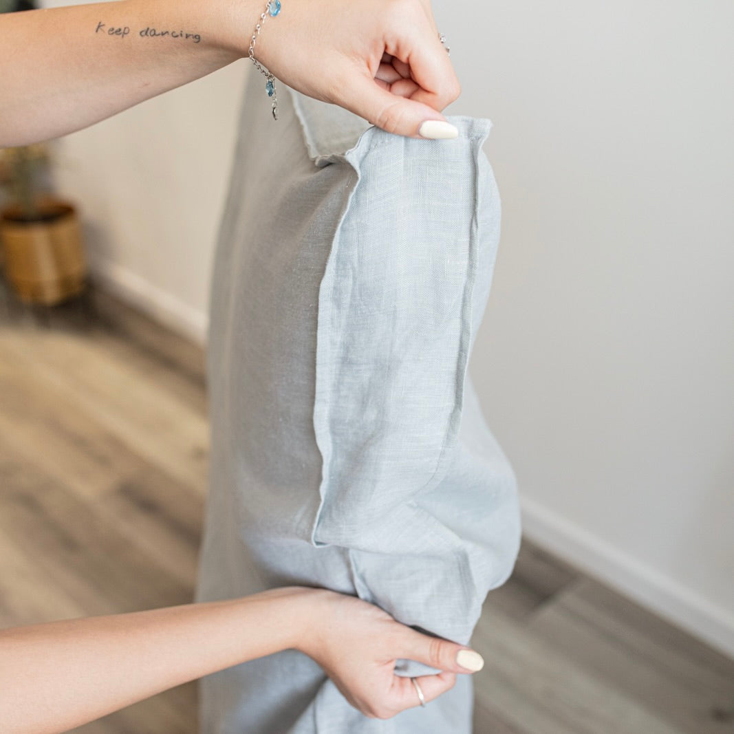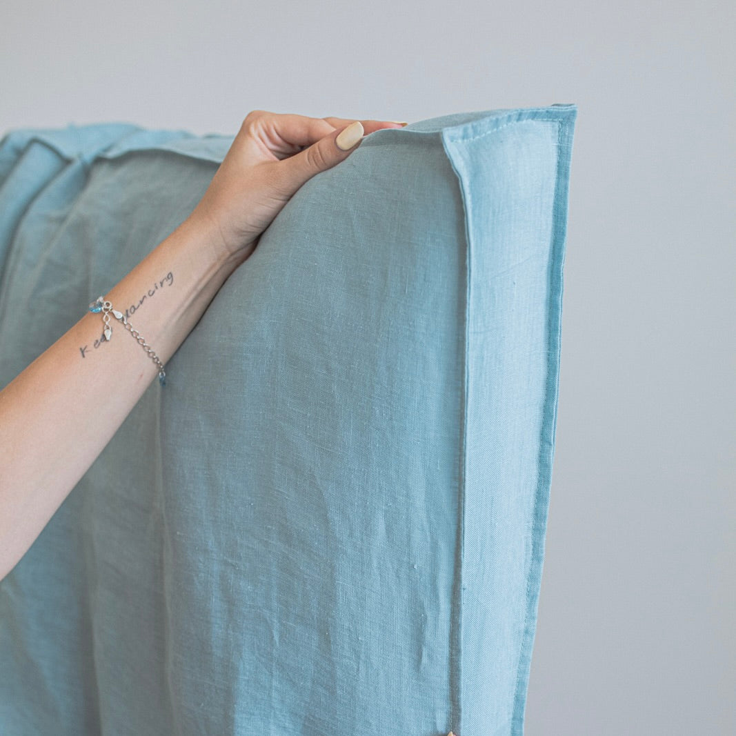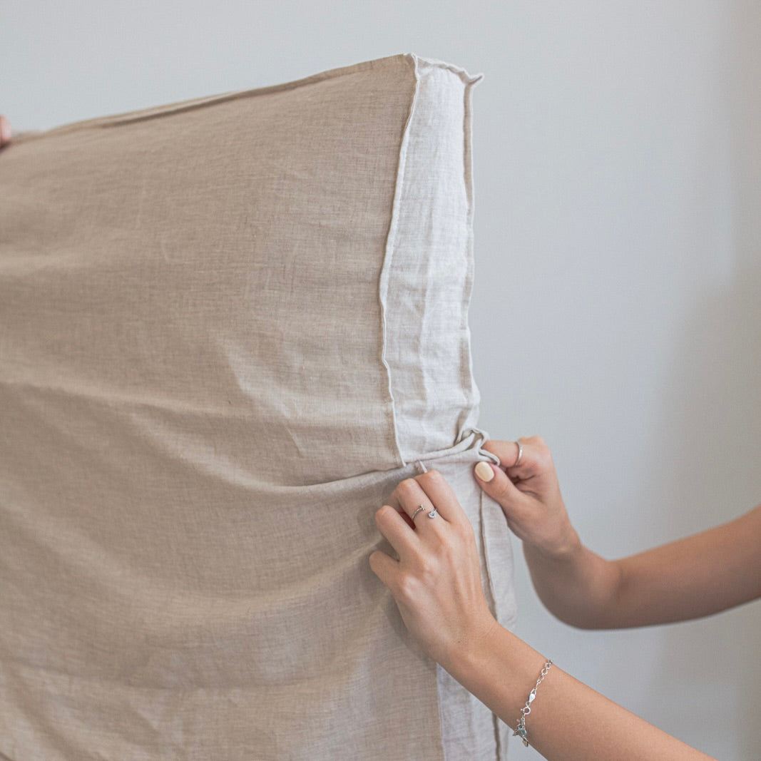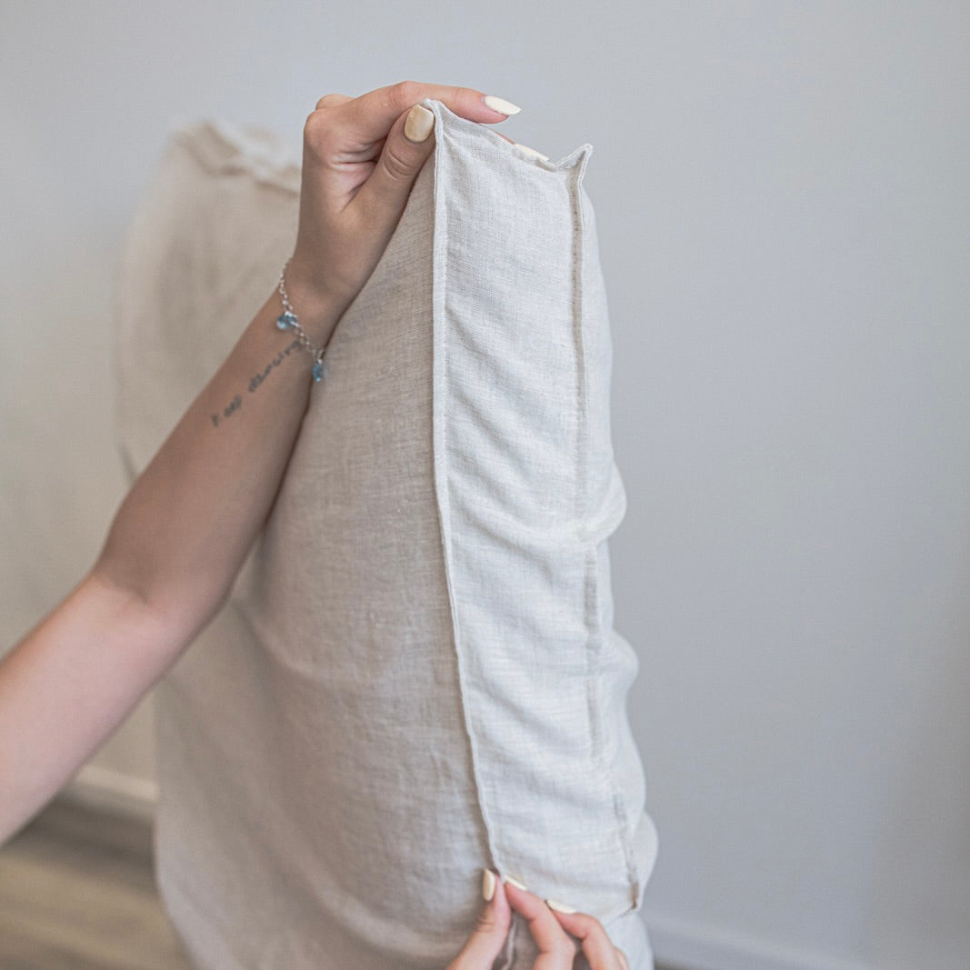 - Funda de lino intercambiable con terminación en pequeña pestaña de 1 cm.