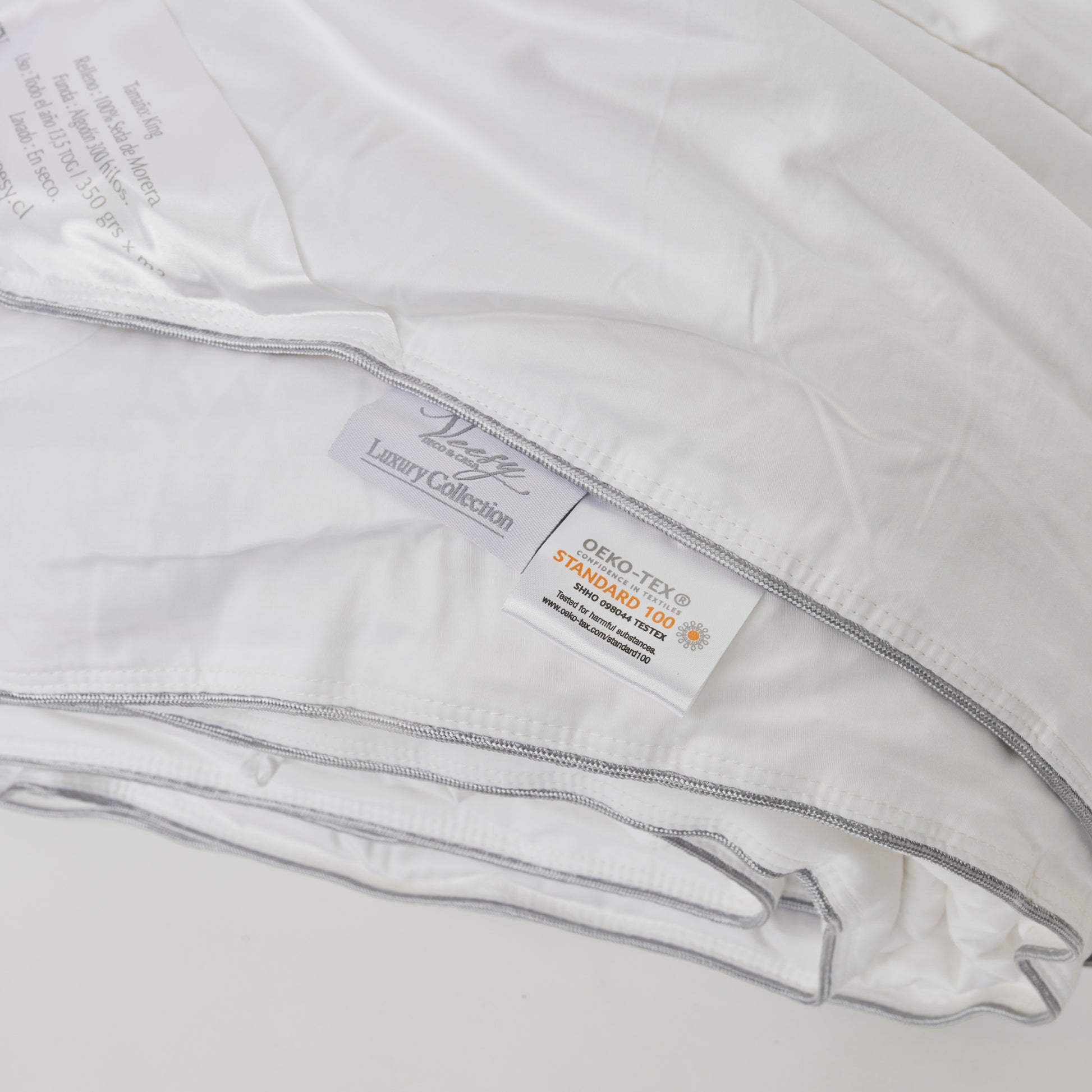 La seda es una fibra natural de origen animal, constituida en un 97% por proteína del gusano de la seda. Por lo tanto, nuestros plumones de seda no contienen colorantes prohibidos, tintes carcinógenos y/o alérgenos, son inodoros y no emiten sustancias volátiles al medio ambiente.