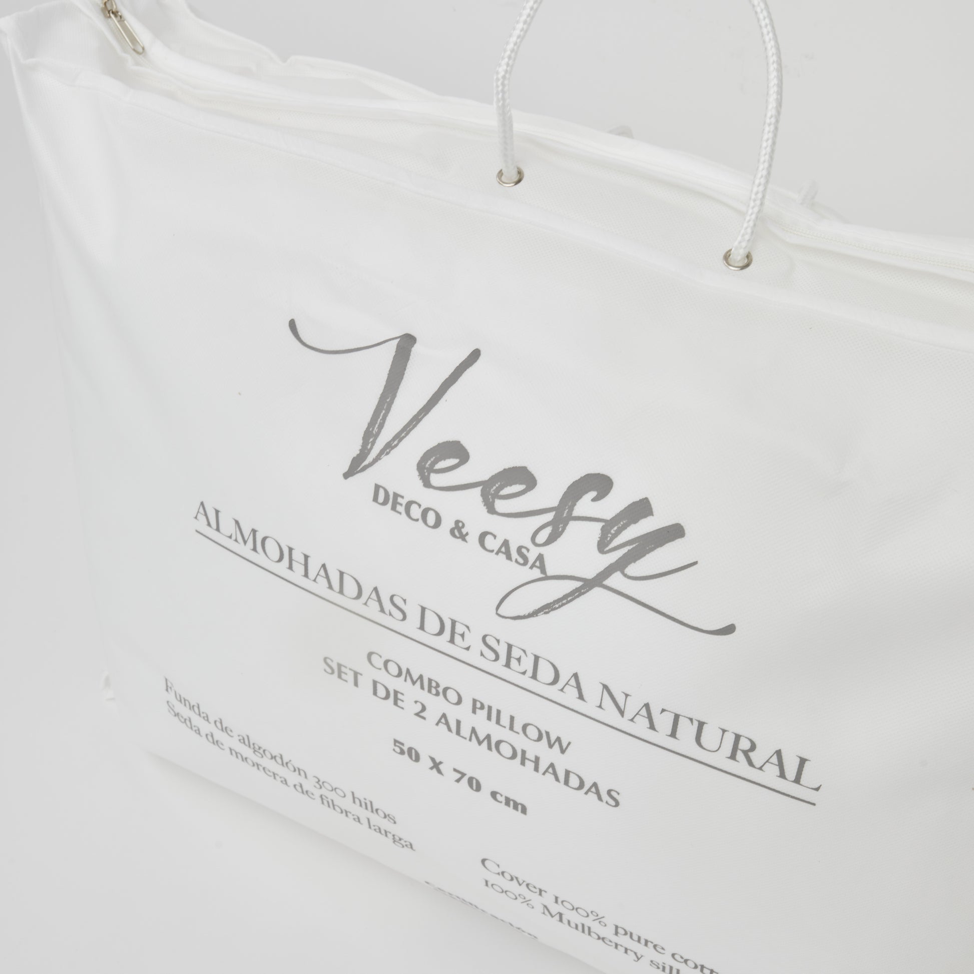 2 Almohadas (50 x 70 cm): Con relleno de seda natural y núcleo de poliéster, estas almohadas brindan un soporte perfecto con una altura media baja de 12 a 14 cm, ideales para una noche de descanso óptimo.